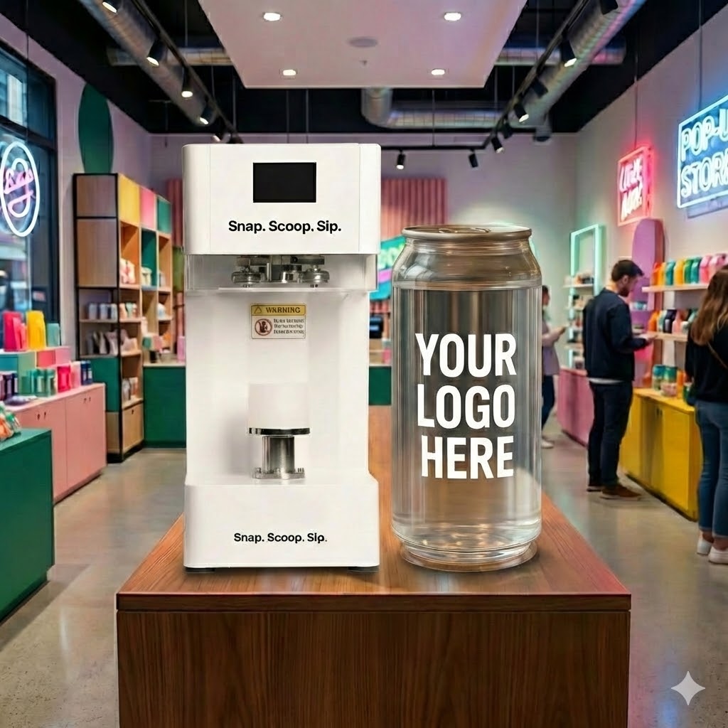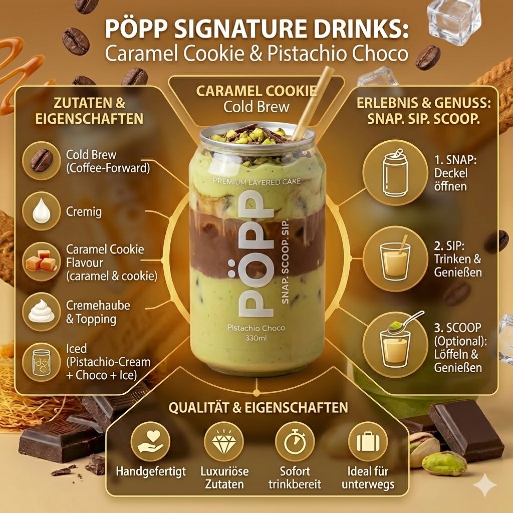 PÖPP Sealer + 330 ml Trend Cans (PET). Das standardisierte Setup für Dessert-Cans und Signature Drinks – für Cafés, Bars, Restaurants, Hotels und Gründer.