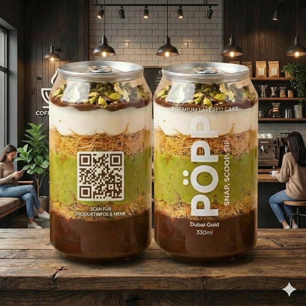 Gäste scannen den Code und sehen sofort: Video, Zutaten, Allergene/Nährwerte – und wie sie dich wiederfinden. So kann aus einem Drink oder Dessert ein wiederkehrender Kauf werden.